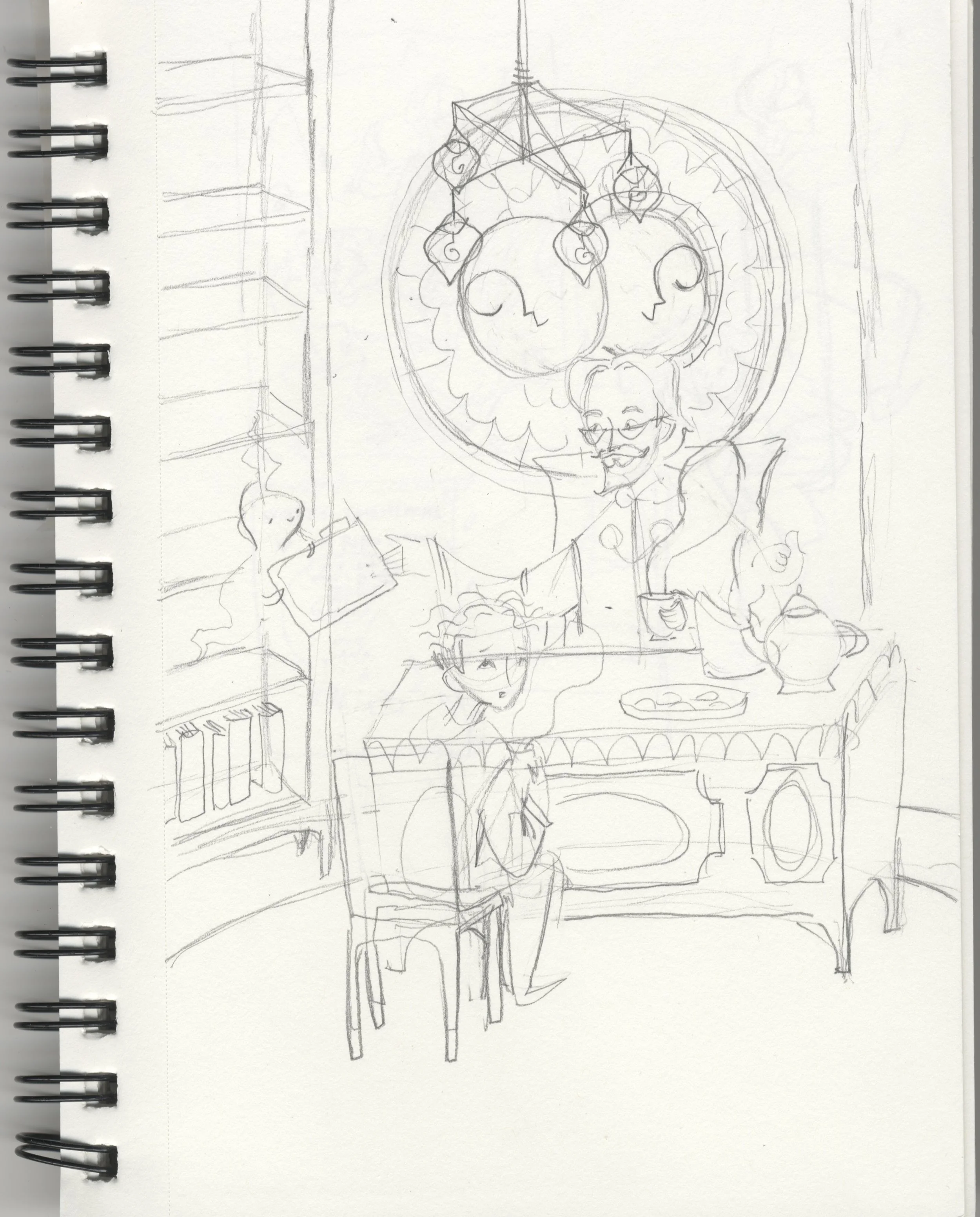 I’ve been living in my sketchbook this month, which is mostly good and only came to haunt me when I was putting this post together. It’s basically all sketches for my MG novel, whose very long title abbreviates to OCATSOTAT which makes me think of the below visual: